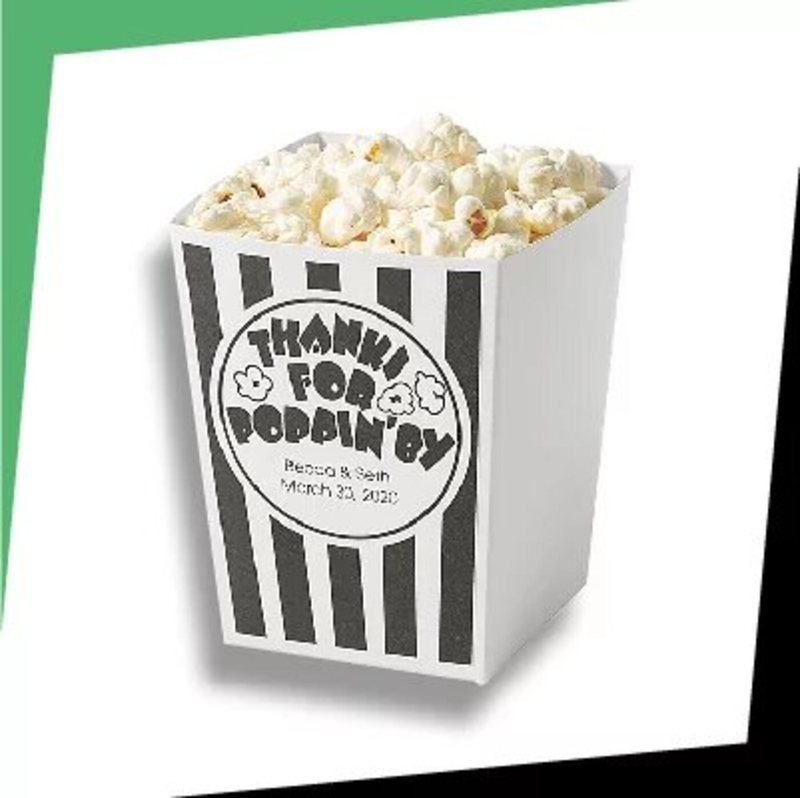 Custom Popcorn Boxes! Functional and stylish, our custom popcorn boxes are perfect for movie nights or fundraisers. Choose from a variety of sizes and colors!